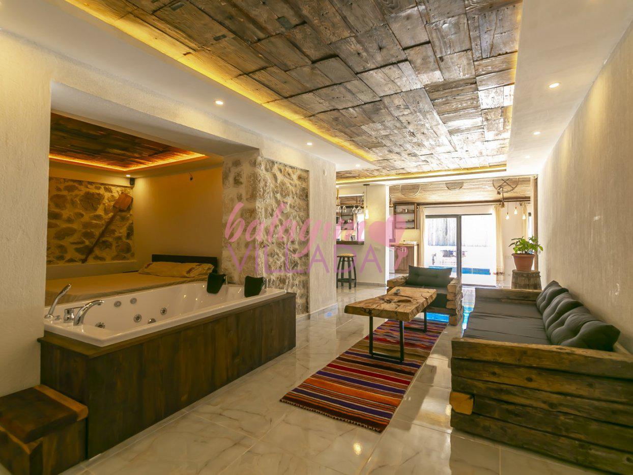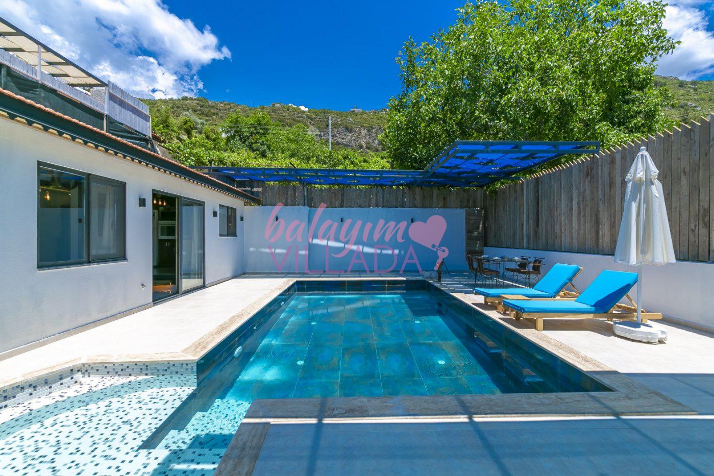Villa Pierre, Kalkan İslamlar Köyü'nde yeşillikler içinde yer alan keyifli balayı villamızdır. 1 yatak odası ile 2 kişilik konaklama kapasitesine sahip olan villamız romantik bir balayı planlayan çiftlerimiz için idealdir. Muhafazakar havuzu, yatak odasında bulunan jakuzisi, langırt oyunu ile keyifli bir tatil imkanı sunar.