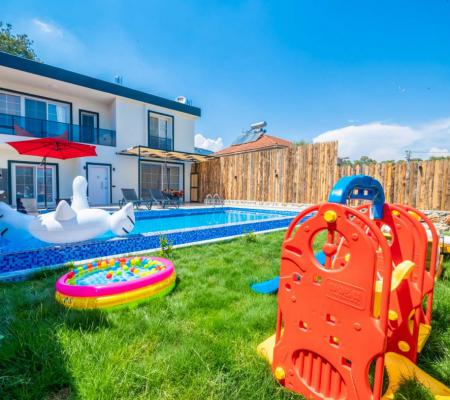 Villa Pine Garden, Fethiye'nin Kumluova bölgesinde bulunmaktadır. Muhafazakar özel havuzlu olan balayı villamız geniş bahçesi ile dikkat çekiyor. Balayı çiftlerimizin çok fazla tercih ettiği ve beğendiği villamızda romantik bir tatil geçirebilirsiniz. İç dizaynı sizlerin ihtiyaçlarına göre dekore edilen villamızın alt katında oturma odası, mutfak üst katında 2 yatak odası, süit yatak odasında banyo- jakuzi bulunmaktadır. Geniş havuz terasında havuzu, barbeküsü bulunmaktadır. Villamızın aynı zamanda havuz alanı korunaklı olup muhafazakar çiftlerimiz için ideal bir tercih olacaktır. 1 banyo suit yatak odasında, diğer 2 adet banyo katlarda ortak kullanımdır.