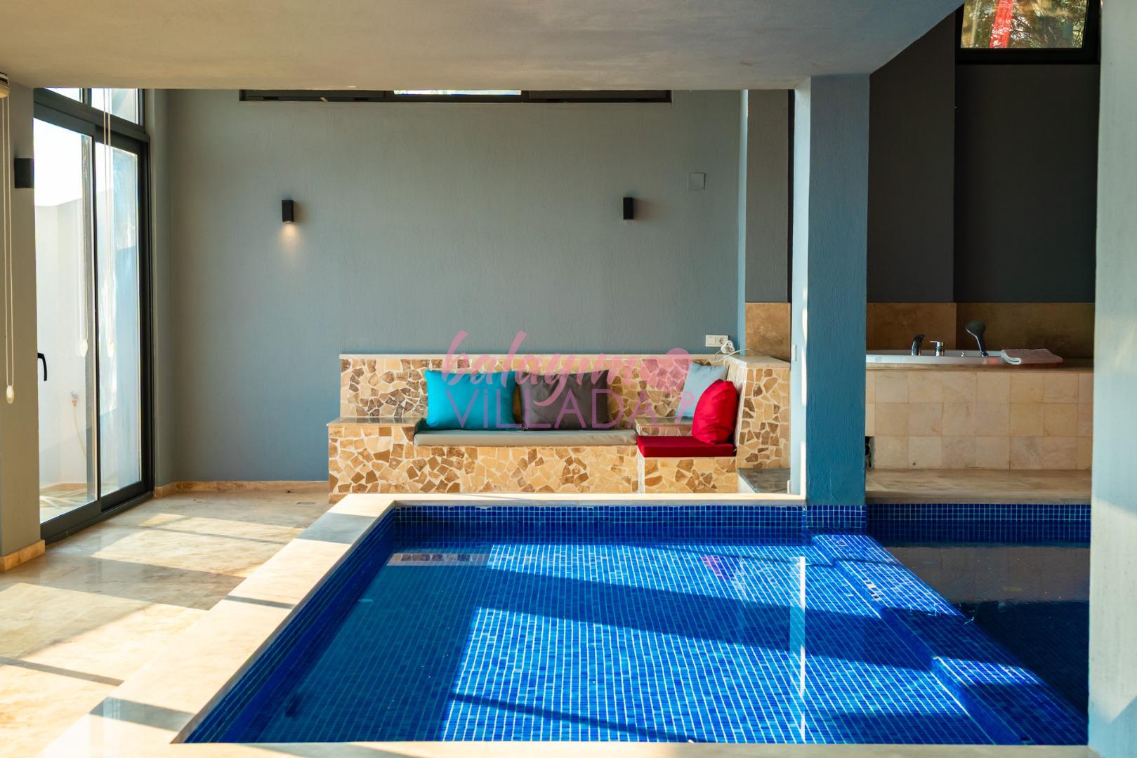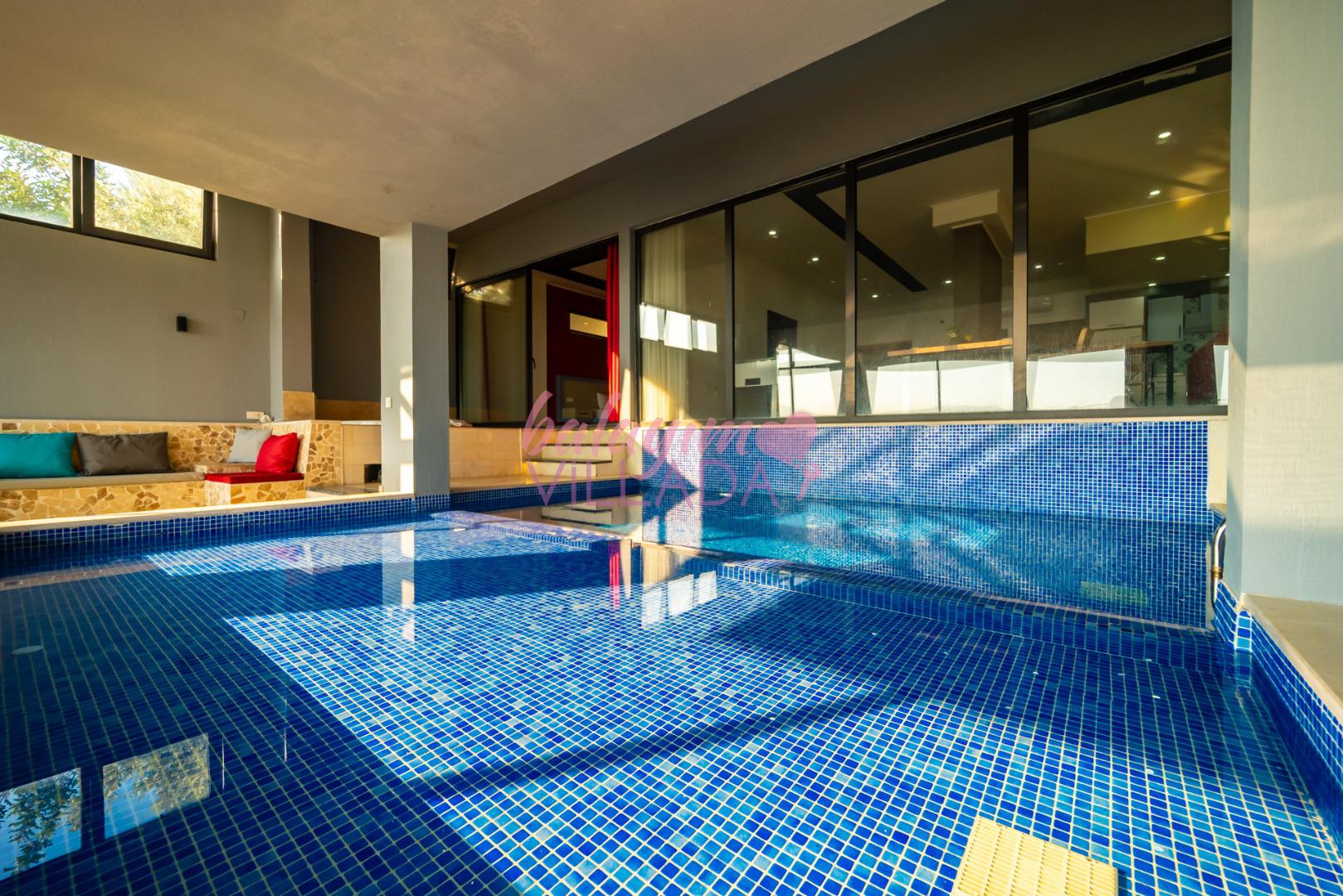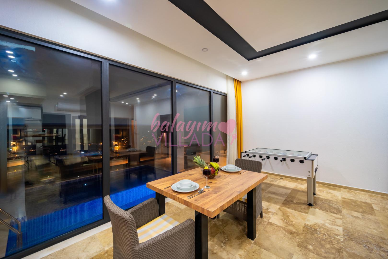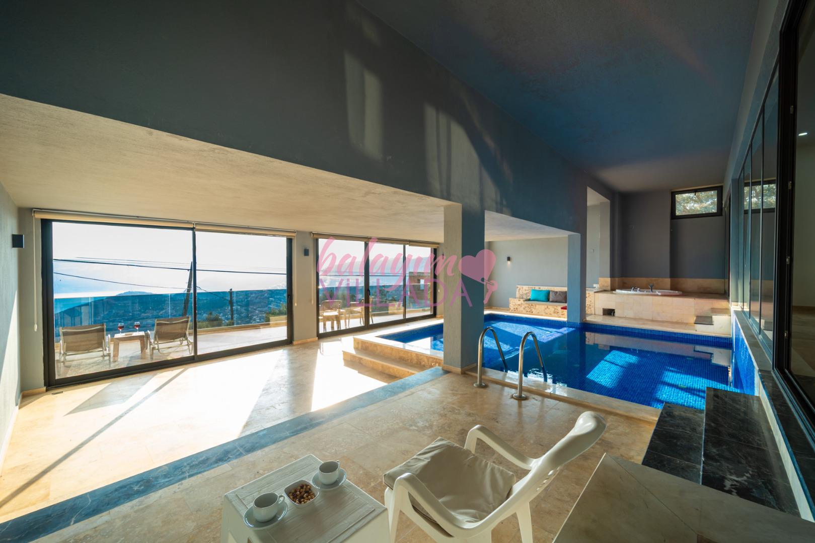 Villa Retro Duo, Kalkan merkezine yakın bir konum olan Kördere’de bulunuyor. Tek yatak odalı villamızda hamam, sauna, jakuzi, langırt, ısıtmalı havuz, sinema odası gibi çiftlerimizin keyifli bir tatil geçirmesi için seçenekler bulunuyor. Harika bir deniz manzarasına sahip olan villamız, balayına çıkmak isteyen çiftlerimiz için özel olarak hazırlandı. Villamızın havuzu iç tarafta bulunmaktadır ve üstü kapalıdır. Kış aylarında da ısıtma özelliği sayesinde keyifli bir tatil imkanı sunar. Villamız gözlerden uzak olmak isteyen çiftlerimiz için de oldukça idealdir.