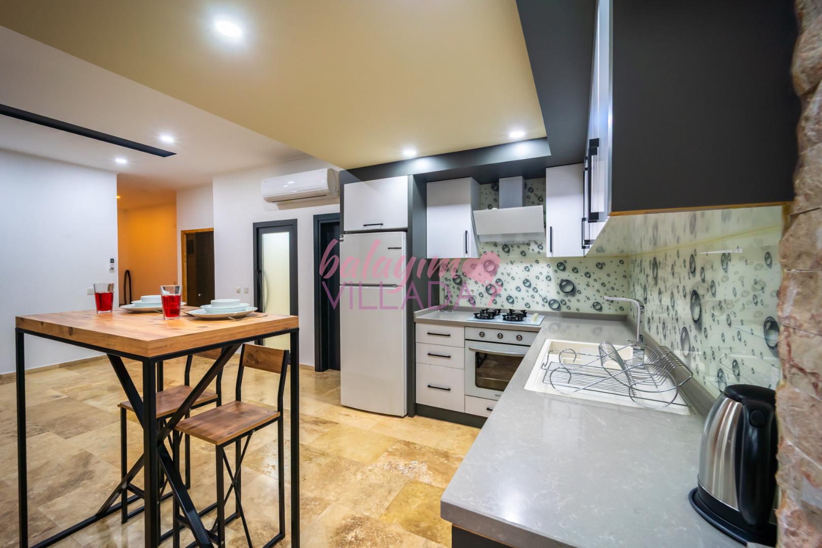 Villamız kalabalıktan uzak izole bir balayı tatili için tam donanımlı mutfak ve tatil keyfinizi tamamlayıcı detaylar ile ihtiyacınız olan her şeyi bir arada bulabileceğiniz keyifli ve güvenli bir tatil imkanı sunuyor.