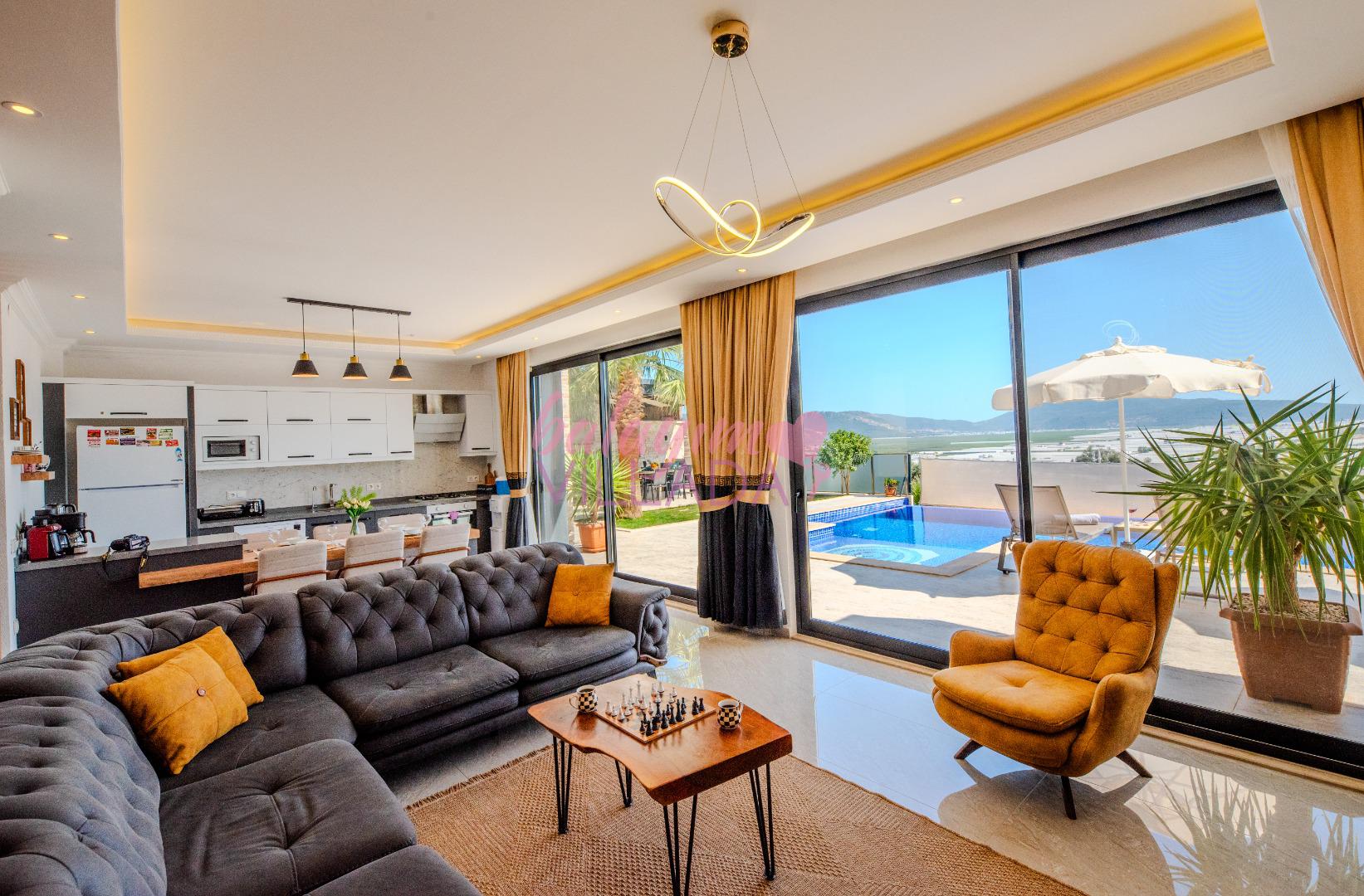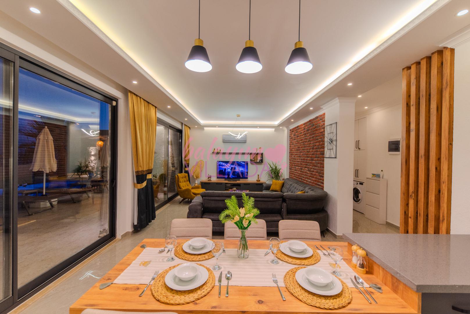 Modern Mimari, Eşsiz Konfor: Çavdır’ın temiz havası eşliğinde, modern mobilyalarla döşenmiş geniş yaşam alanı ve tam donanımlı mutfağıyla Villa Ruzanna, evinizdeki sıcaklığı lüks bir dokunuşla sunuyor.