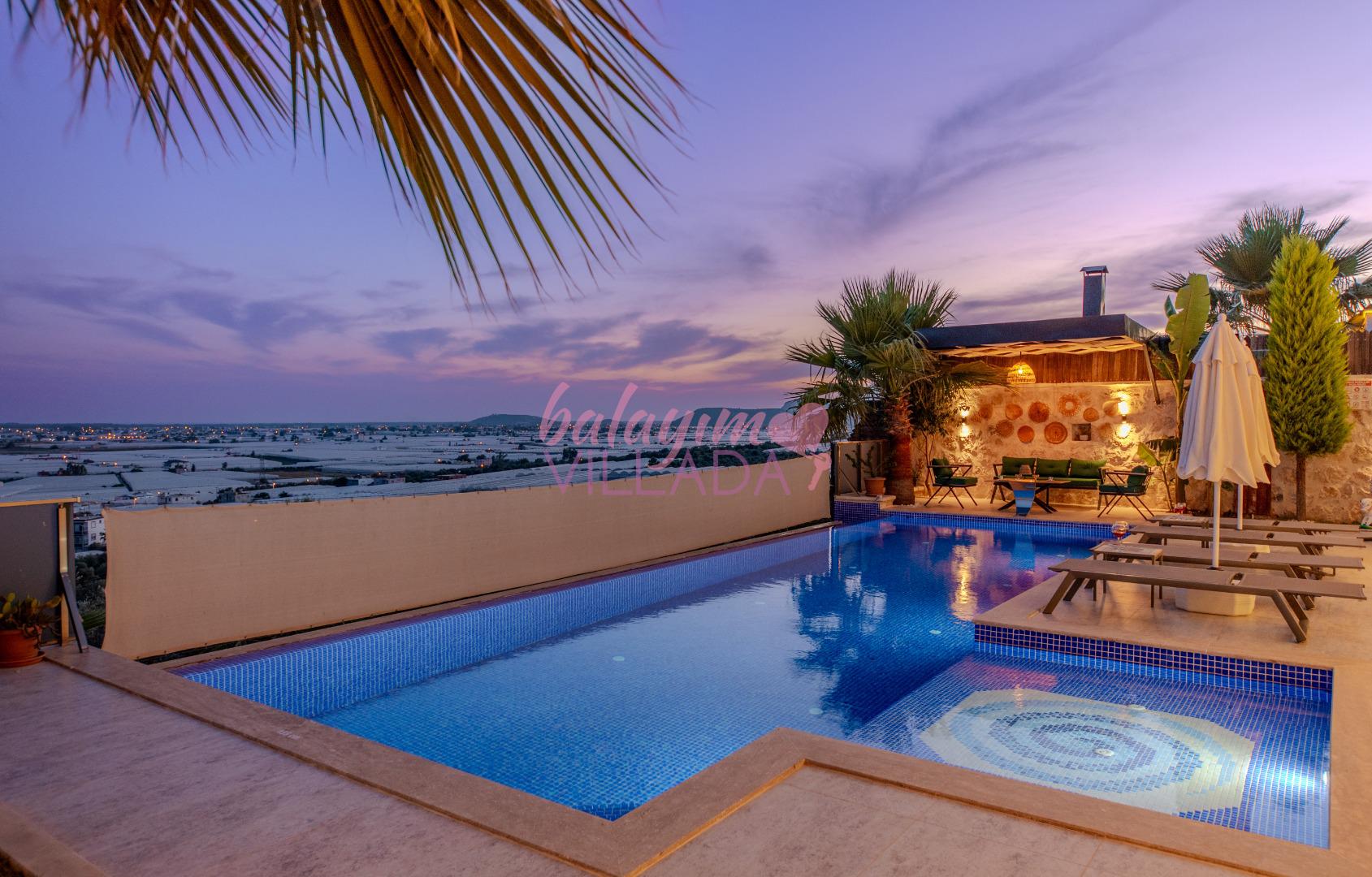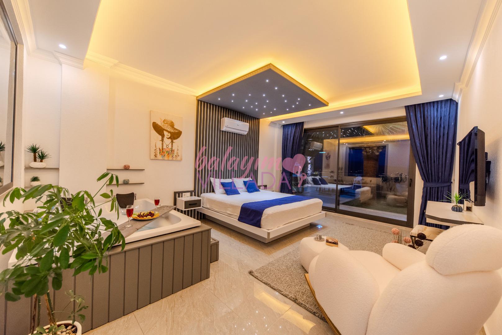 Geniş havuz terasında romantik akşam yemekleri yiyebileceğiniz, yıldızların altında huzur bulacağınız Villa Ruzanna, Balayım Villada güvencesiyle sizi bekliyor.
