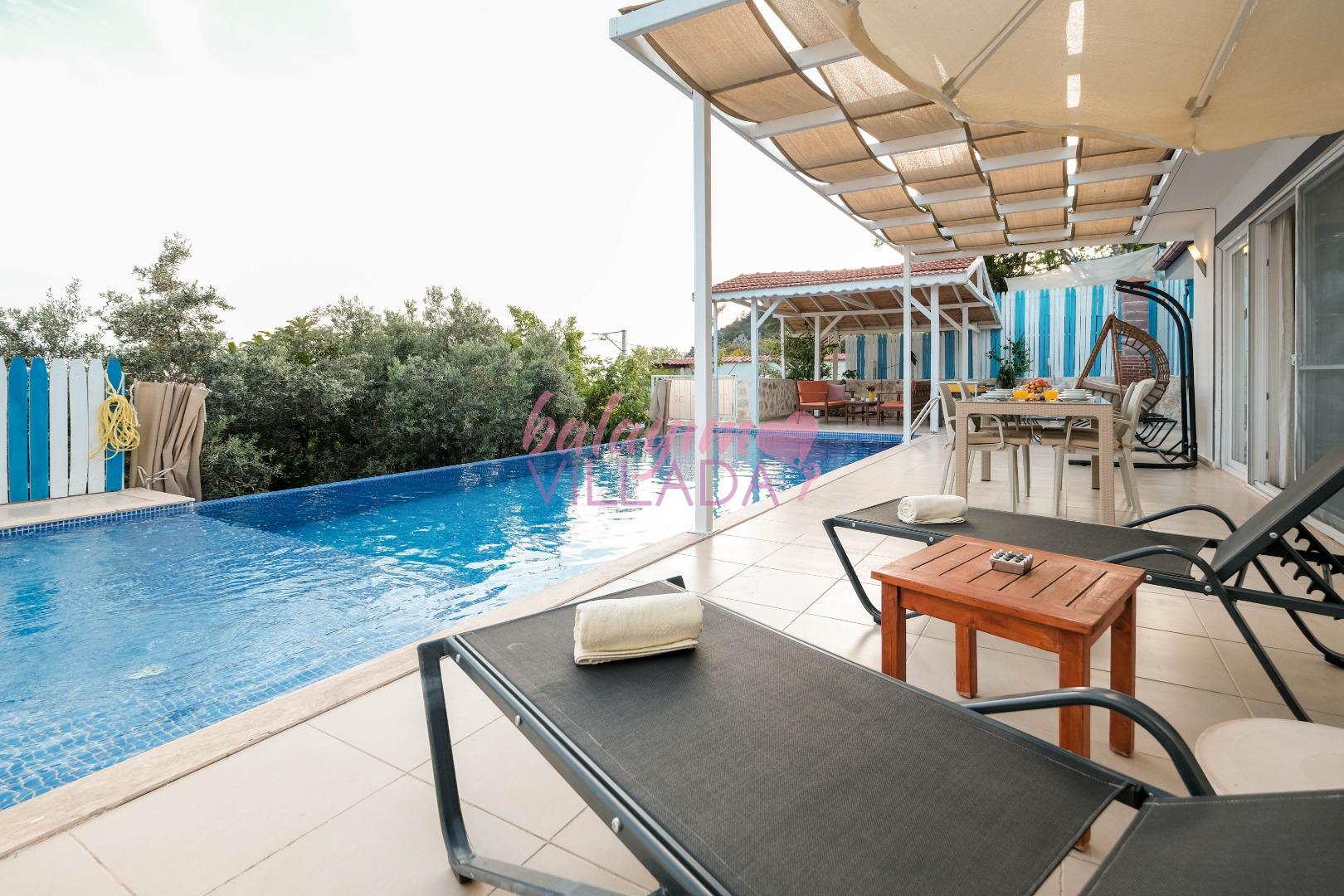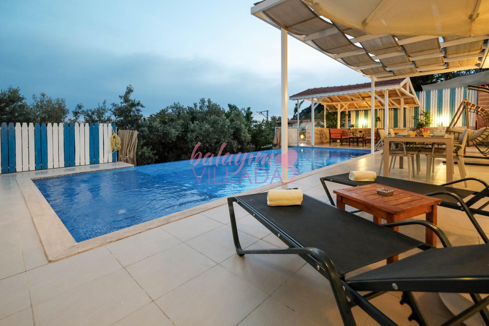 Villamızda bulunan özel havuz, tam donanımlı mutfak ve tatil keyfinizi tamamlayıcı detaylar kalabalıktan uzak izole bir tatil için ihtiyacınız olan her şeyi bir arada sunarak keyifli ve güvenli bir tatil imkanı sunuyor.
