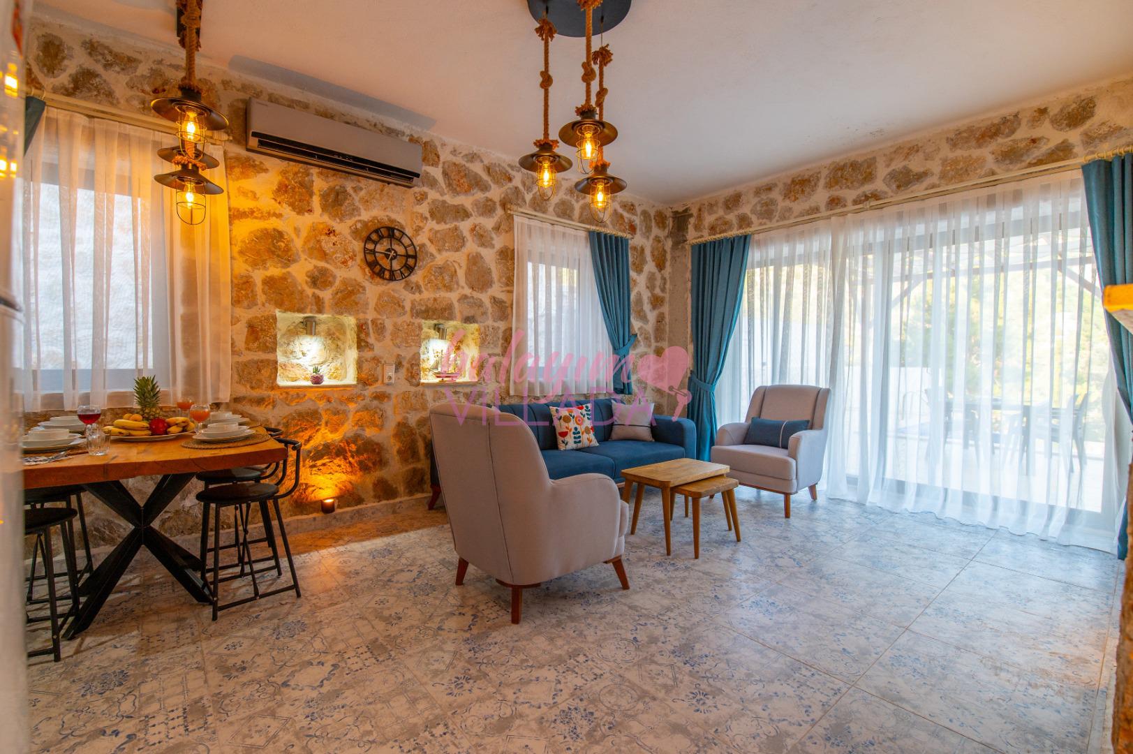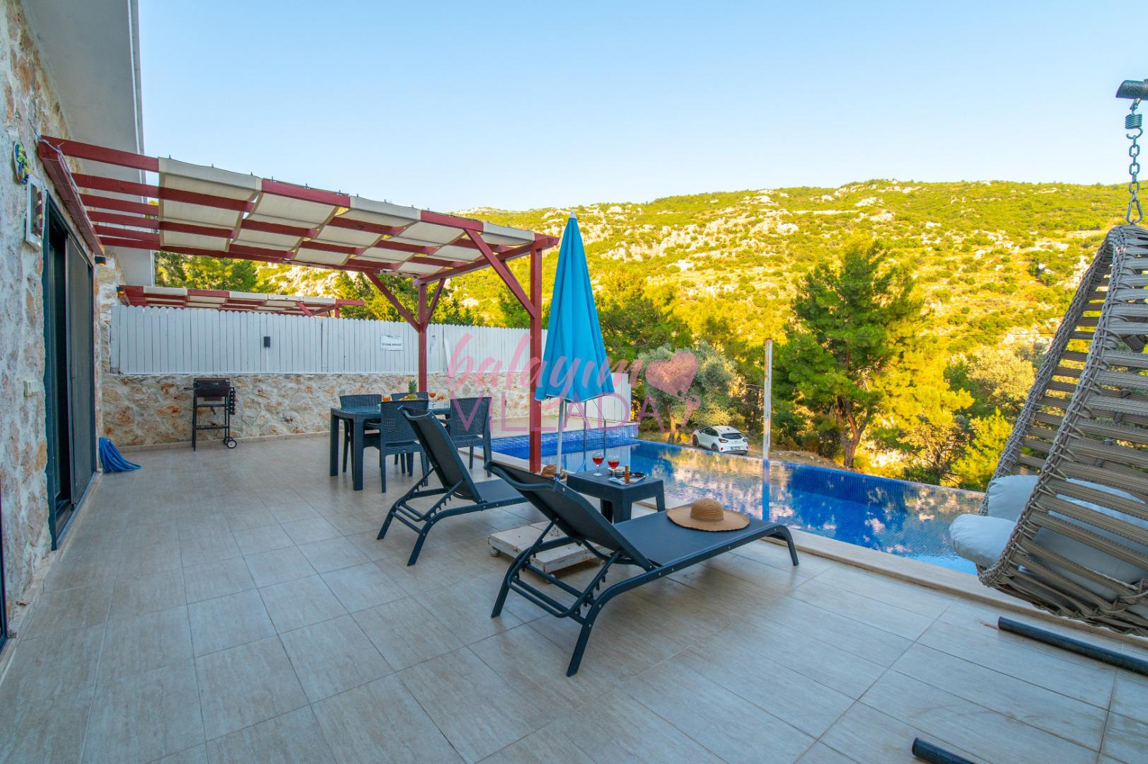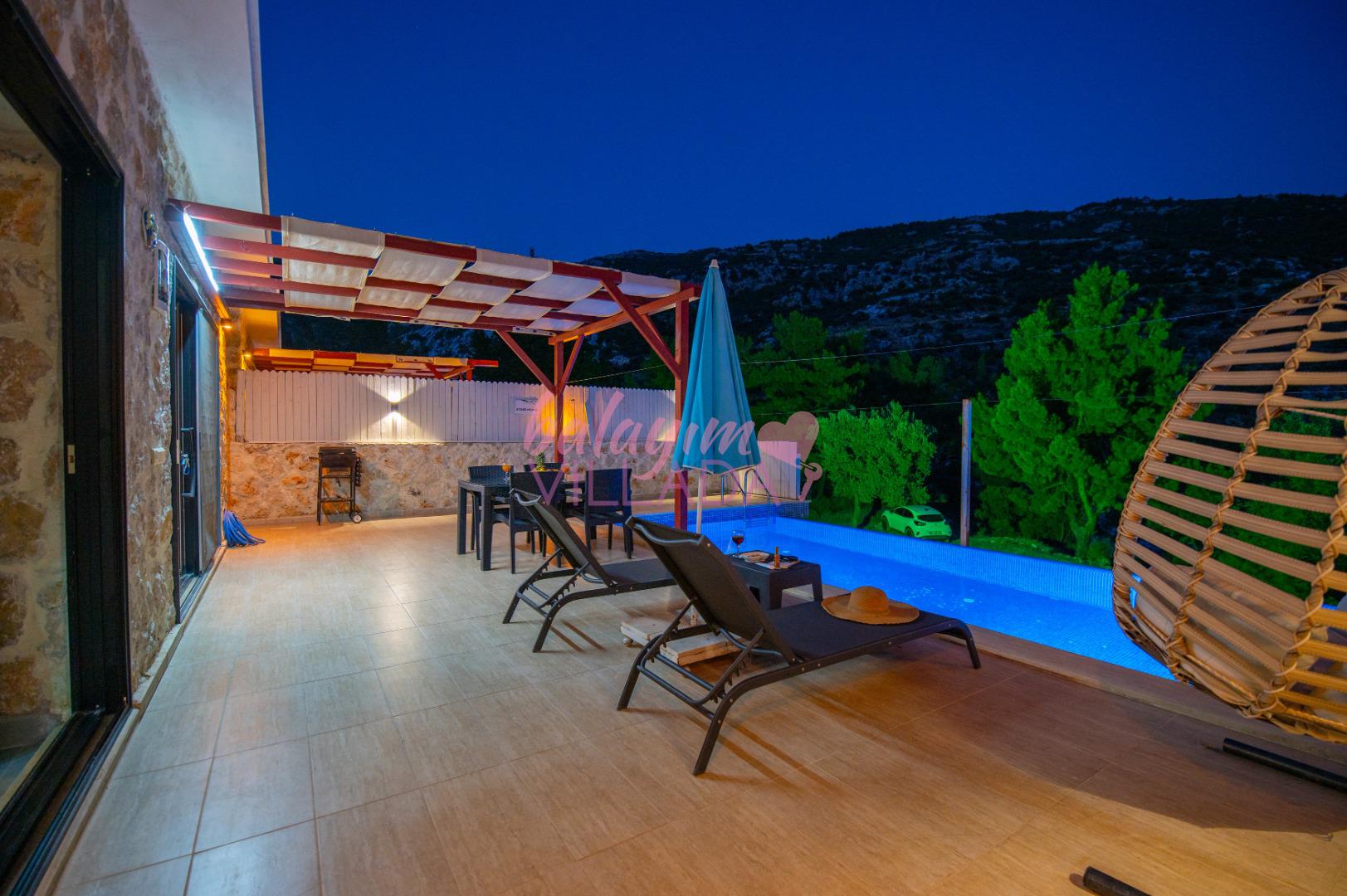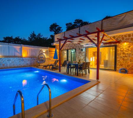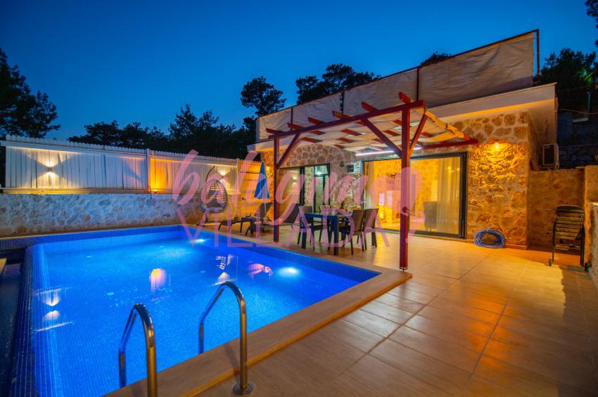 Villa Stone House 1, dünyaca ünlü tatil beldesi Kalkan’ın İslamlar Mevkii'nde bulunan modern ve şık tarzda inşa edilmiş muhafazakar konseptte bir balayı villasıdır. Özel yüzme havuzlu olup havuzu dışarıdan görünmez. Balayı çiftlerimiz veya baş başa tatile çıkmak isteyen misafirlerimiz için ideal bir seçenek olacaktır. Korunaklı yüzme havuzu, masa ve sandalyeler, mangal ve keyifli bir salıncağı da bulunmaktadır.