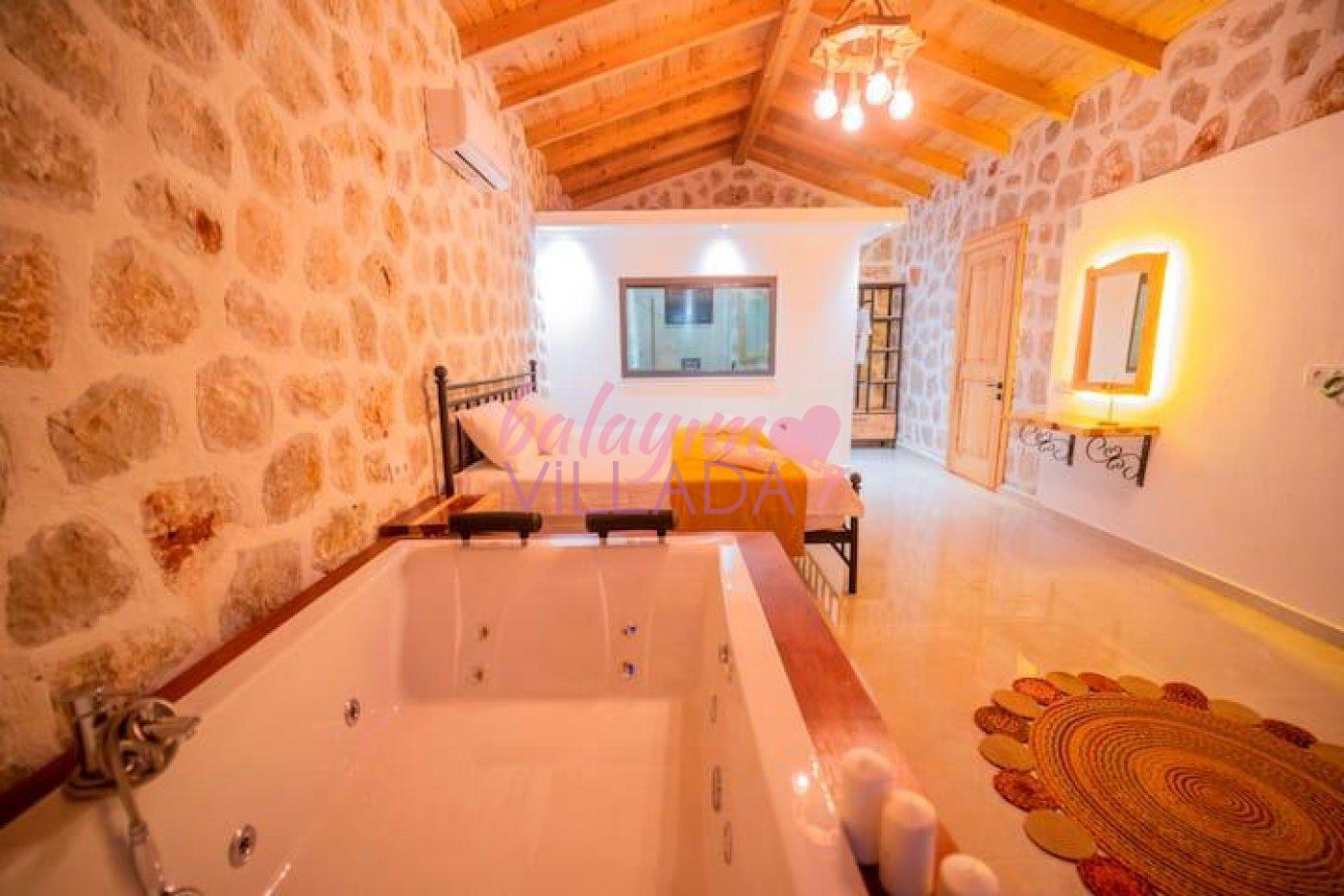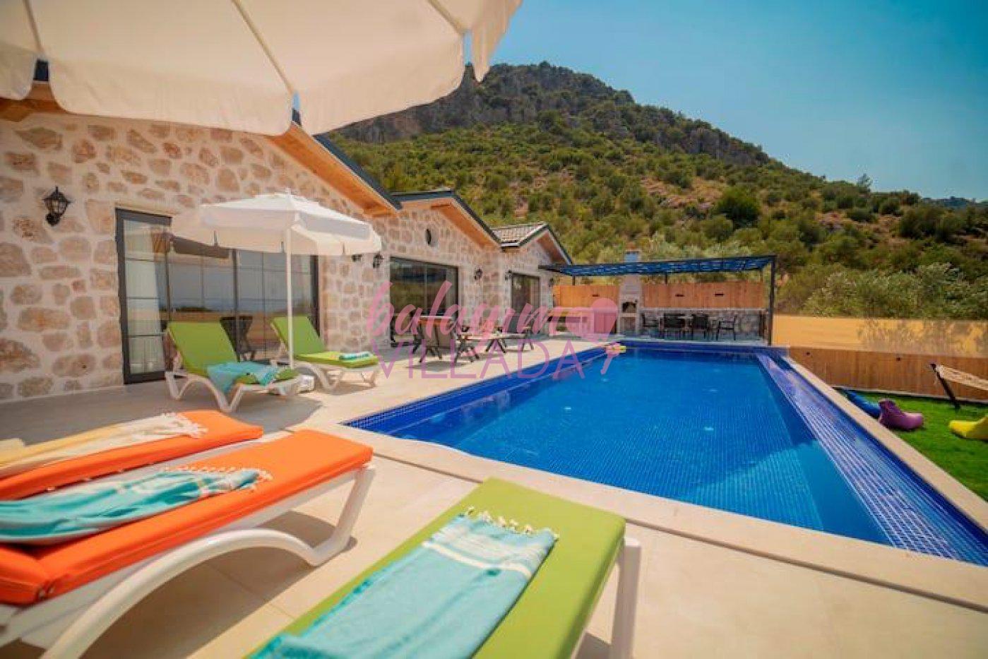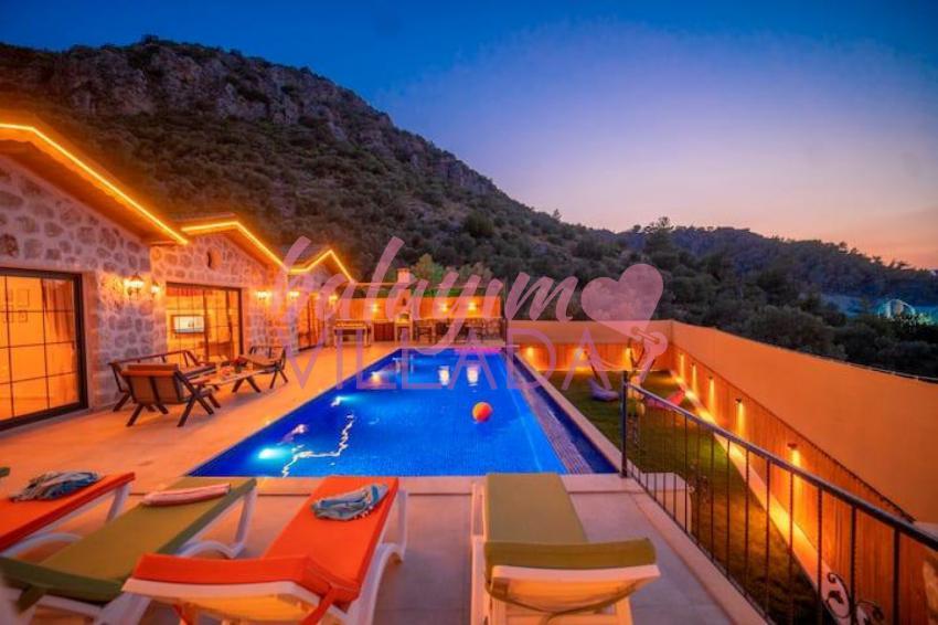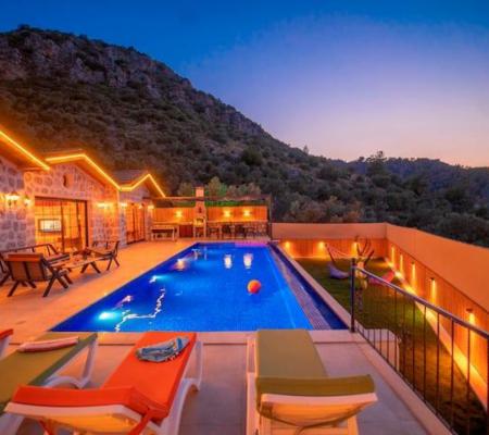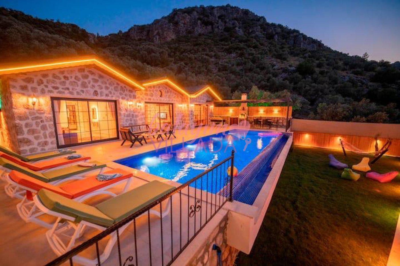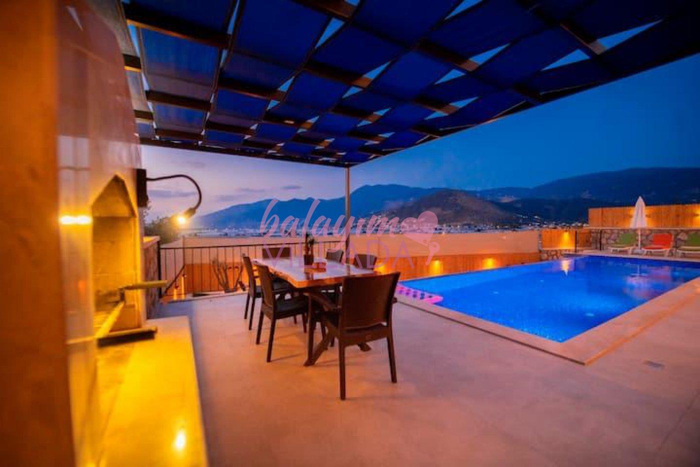 Kalkan Yeşilköy Bölgesinde bulunan balayı için tercih edilen lüks villalarımızdandır. Balayı çiftlerimiz için villamızda langırt, hamak, jakuzi gibi tatil keyfinizi arttıracak özellikler mevcuttur. Şehrin gürültüsünden uzakta sessiz ve sakin bir tatil geçirebilirsiniz. Villamızın özel yüzme havuz etrafı korunaklı olduğu için muhafazakar çiftlerimiz gönül rahatlığıyla havuzu kullanabilirler.