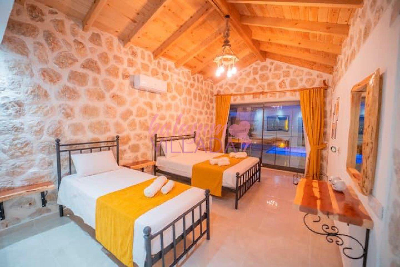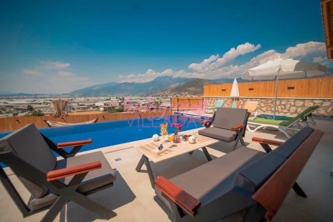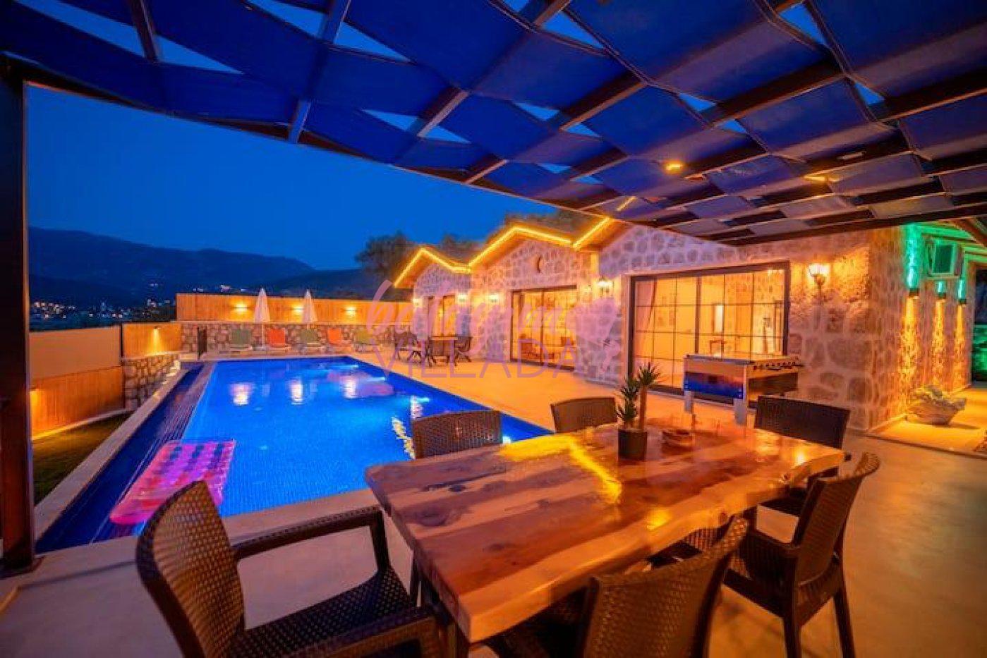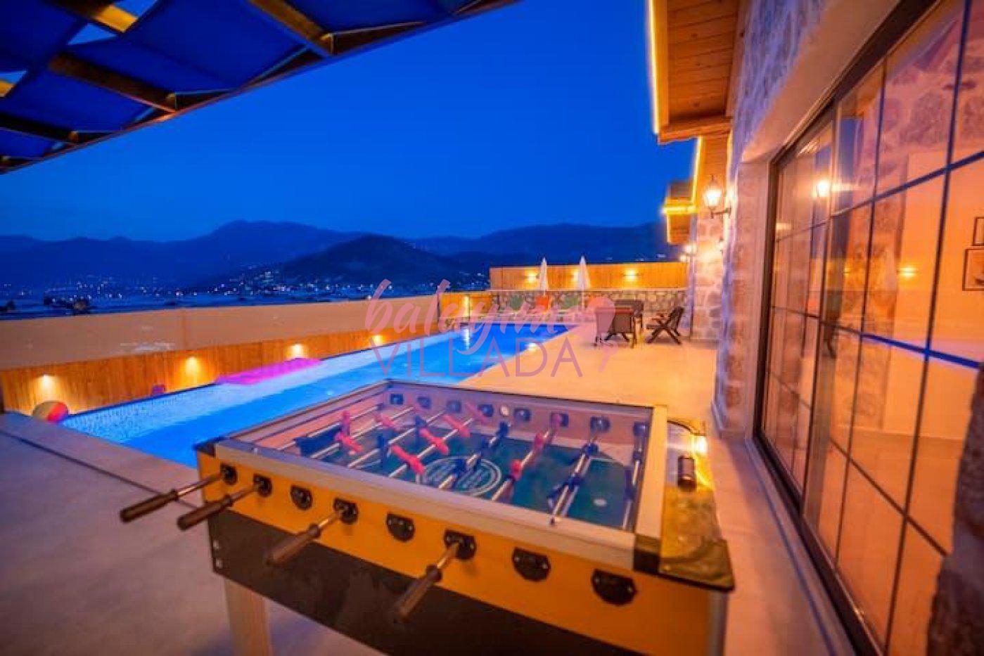 Kalkan Yeşilköy Bölgesinde bulunan balayı için tercih edilen lüks villalarımızdandır. Balayı çiftlerimiz için villamızda langırt, hamak, jakuzi gibi tatil keyfinizi arttıracak özellikler mevcuttur. Şehrin gürültüsünden uzakta sessiz ve sakin bir tatil geçirebilirsiniz. Villamızın özel yüzme havuz etrafı korunaklı olduğu için muhafazakar çiftlerimiz gönül rahatlığıyla havuzu kullanabilirler.