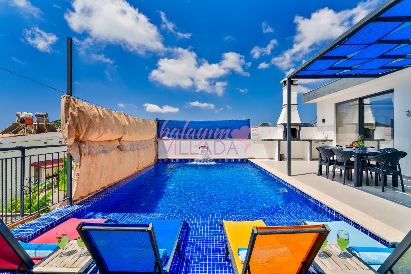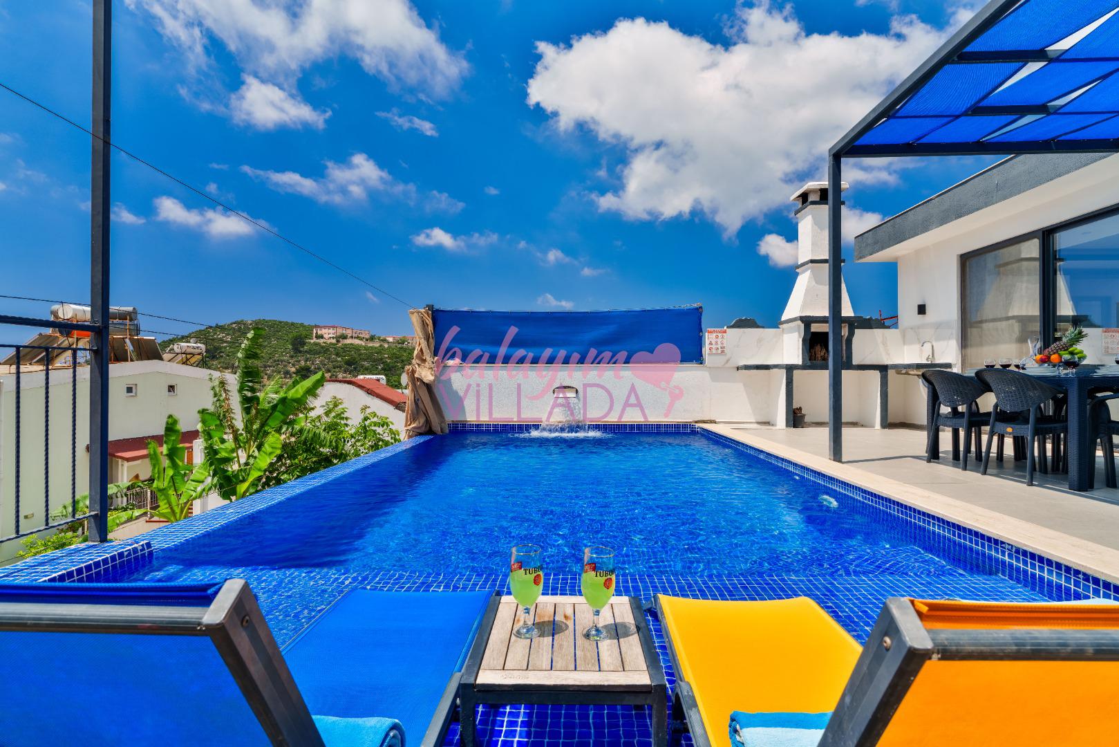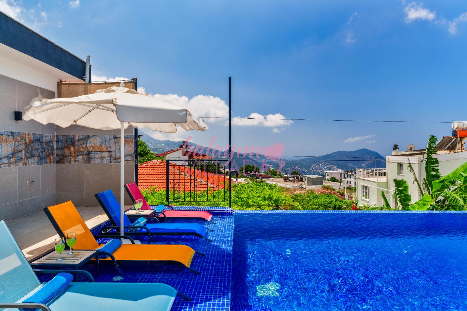 Antalya'nın eşsiz tatil beldelerinden birisi olan Kalkan'ın Akbel mevkiinde bulunan bahçeli, masa tenisi, langırt bulunan villalarımızdan bir tanesidir. Villamızın havuz etrafı korunaklı olup dışarıdan görünmediği için gönül rahatlığıyla tatilinizi yapabilirsiniz.