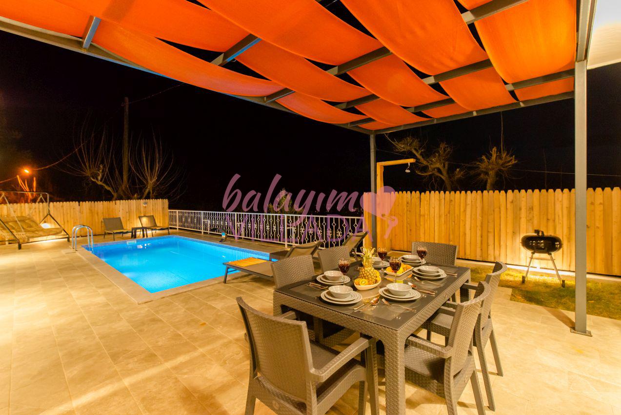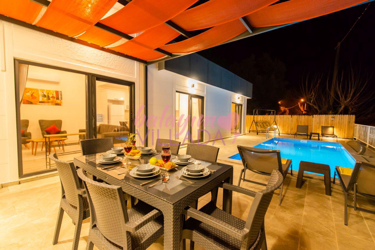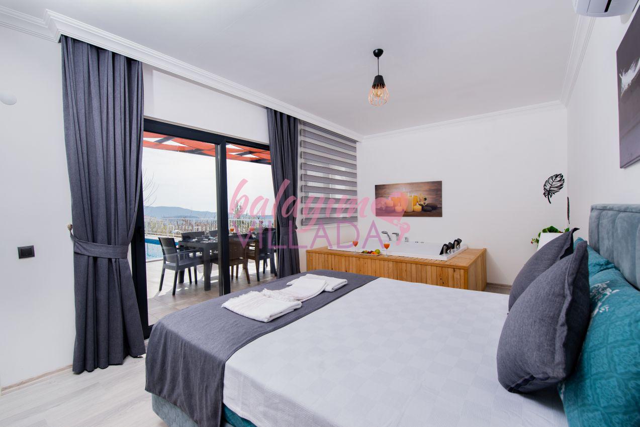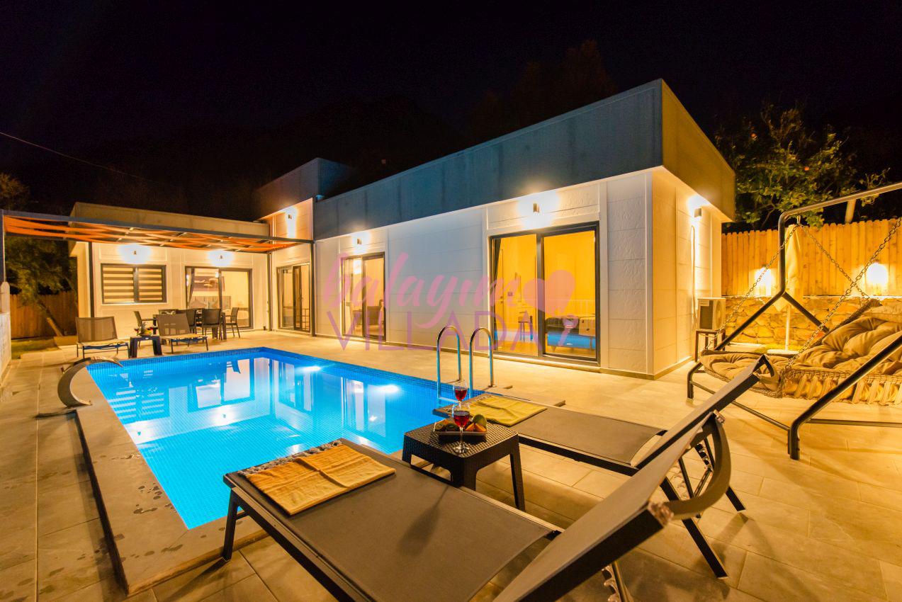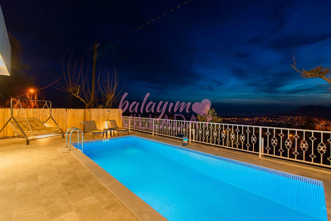 Villa Ural, Kalkan Üzümlü bölgesinde yer alan villamız 2 yatak odalı ve 4 kişi kapasitelidir. Villamızın tüm odalarından havuza çıkış bulunmaktadır. Tüm odalarımız klimalı, süit yatak odamız ebeveyn banyoludur. Villamızın ikinci banyosu, salondan genç yatak odasına giden koridor üzerindedir. Ve bu banyoda çamaşır makinesi de bulunmaktadır. Villamız özel havuzu, jakuzili yatak odası ile Kalkan kiralık villa, Kalkan kiralık balayı villası kategorisindedir. Villamızın bahçesinde şelaleli havuzumuz, masa takımı, sehpa, barbekü, salıncaklı yatağımız, şezlonglar ve şemsiye bulunmaktadır. Villamız, özellikle akşam saatlerinde güneşin tam karşımızdan batması nedeniyle muhteşem bir manzaraya sahip olmaktadır.